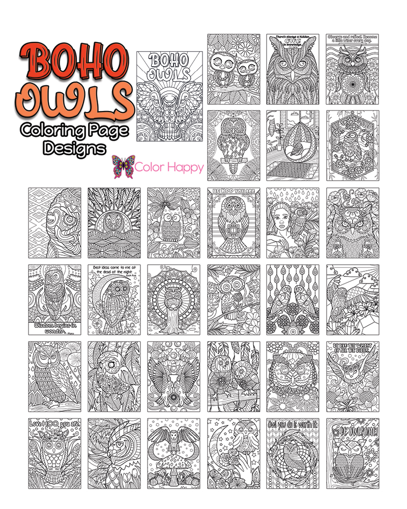 Boho Owls Coloring Pages