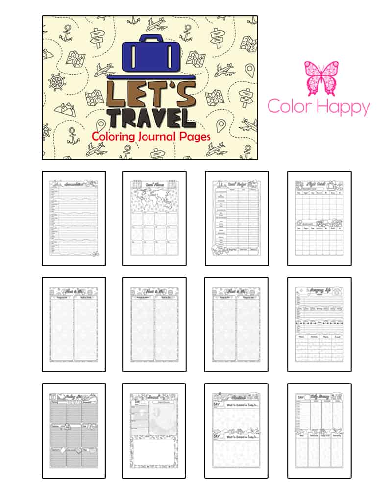 Let’s Travel Coloring Journal Pages