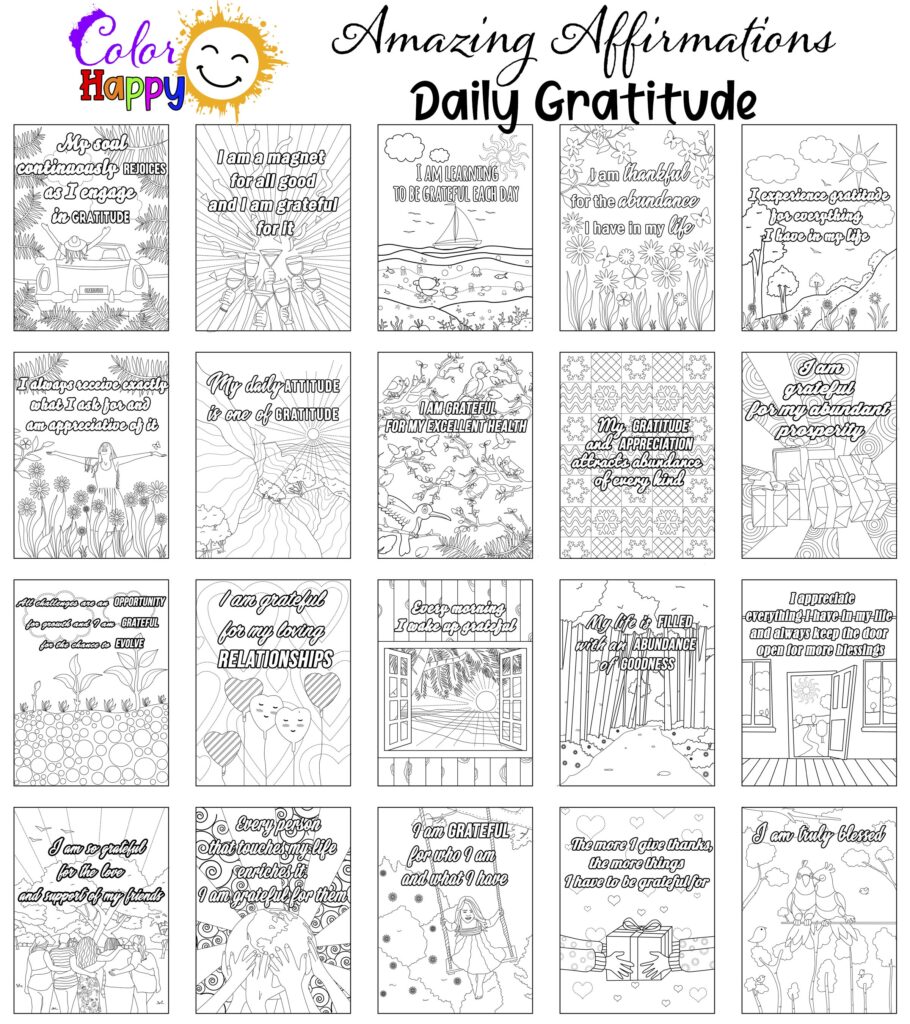 Amazing Affirmations – Daily Gratitude Digital Coloring Pages