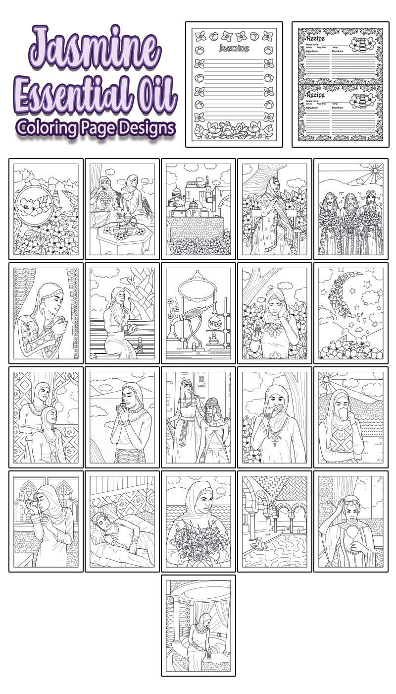 Explore Jasmine Essential Oil while having an Arabian Adventure! Fill these coloring pages as you are inspired by the intricate details of Ancient Arabic design. Allow this beautiful flower to remind you of love and your love for colors. Most of all, enjoy the relaxing feeling as you color your imagination with each page of this book.